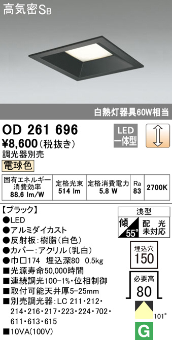 ODELIC ¥ª¡¼¥Ç¥ê¥Ã¥¯ ¥À¥¦¥ó¥é¥¤¥È OD261696