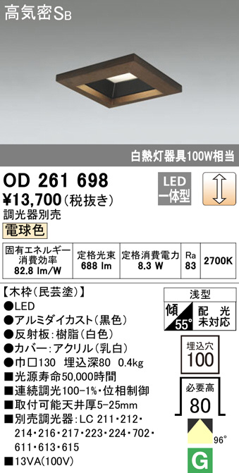 ODELIC ¥ª¡¼¥Ç¥ê¥Ã¥¯ ¥À¥¦¥ó¥é¥¤¥È OD261698