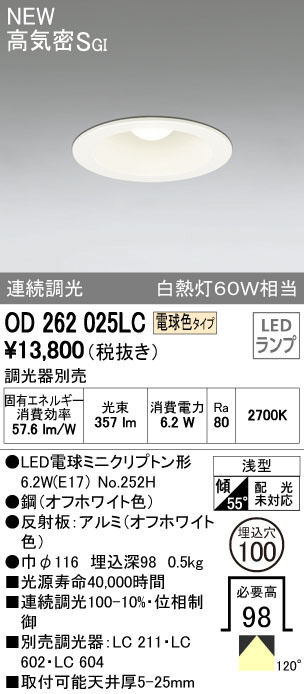ODELIC ¥ª¡¼¥Ç¥ê¥Ã¥¯ ¥À¥¦¥ó¥é¥¤¥È OD262025LC