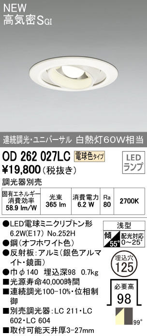 ODELIC ¥ª¡¼¥Ç¥ê¥Ã¥¯ ¥À¥¦¥ó¥é¥¤¥È OD262027LC