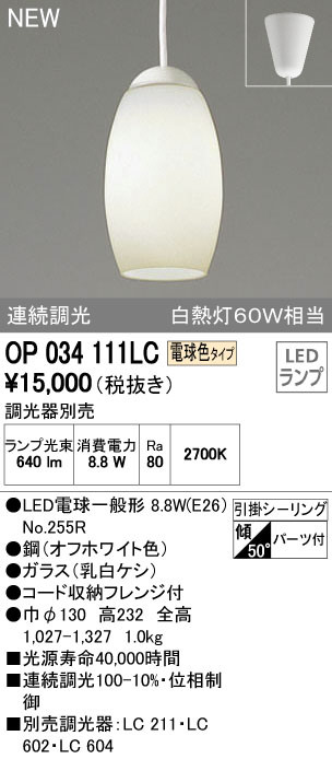 ODELIC ¥ª¡¼¥Ç¥ê¥Ã¥¯ ¥Ú¥ó¥À¥ó¥È¥é¥¤¥È OP034111LC