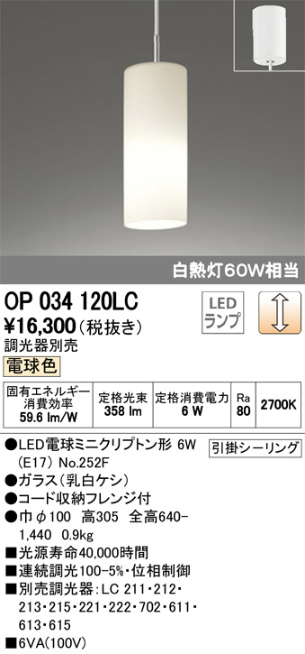 ODELIC ¥ª¡¼¥Ç¥ê¥Ã¥¯ ¥Ú¥ó¥À¥ó¥È¥é¥¤¥È OP034120LC
