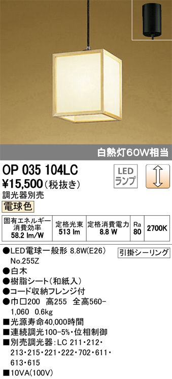 ODELIC ¥ª¡¼¥Ç¥ê¥Ã¥¯ ¥Ú¥ó¥À¥ó¥È¥é¥¤¥È OP035104LC