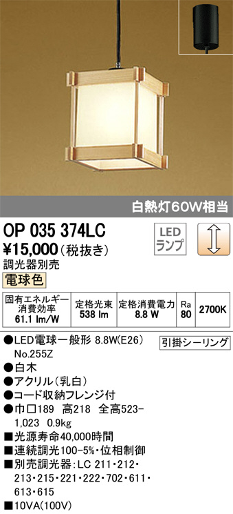 ODELIC ¥ª¡¼¥Ç¥ê¥Ã¥¯ ¥Ú¥ó¥À¥ó¥È¥é¥¤¥È OP035374LC