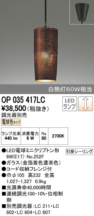 ODELIC ¥ª¡¼¥Ç¥ê¥Ã¥¯ ¥Ú¥ó¥À¥ó¥È¥é¥¤¥È OP035417LC