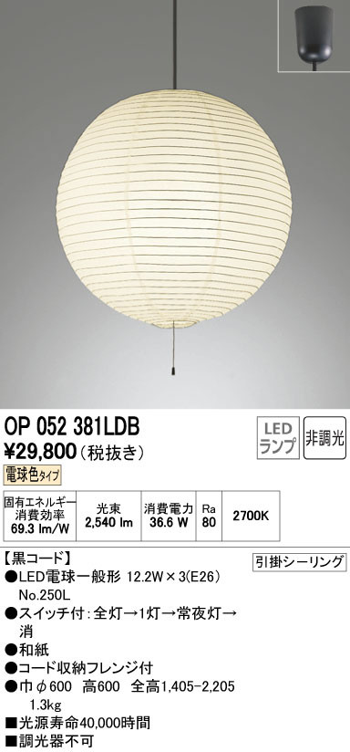 ODELIC ¥ª¡¼¥Ç¥ê¥Ã¥¯ ¥Ú¥ó¥À¥ó¥È¥é¥¤¥È OP052381LDB