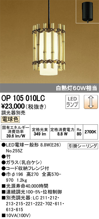 ODELIC ¥ª¡¼¥Ç¥ê¥Ã¥¯ ¥Ú¥ó¥À¥ó¥È¥é¥¤¥È OP105010LC