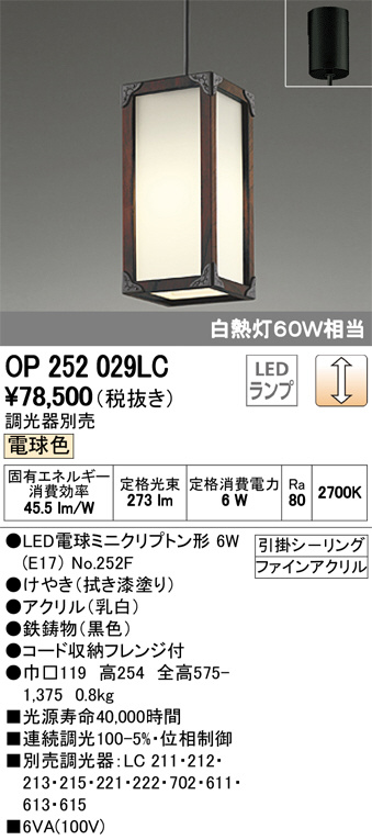 ODELIC ¥ª¡¼¥Ç¥ê¥Ã¥¯ ¥Ú¥ó¥À¥ó¥È¥é¥¤¥È OP252029LC