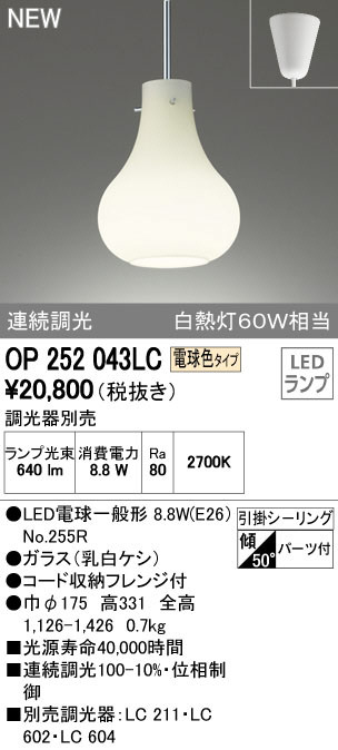 ODELIC ¥ª¡¼¥Ç¥ê¥Ã¥¯ ¥Ú¥ó¥À¥ó¥È¥é¥¤¥È OP252043LC