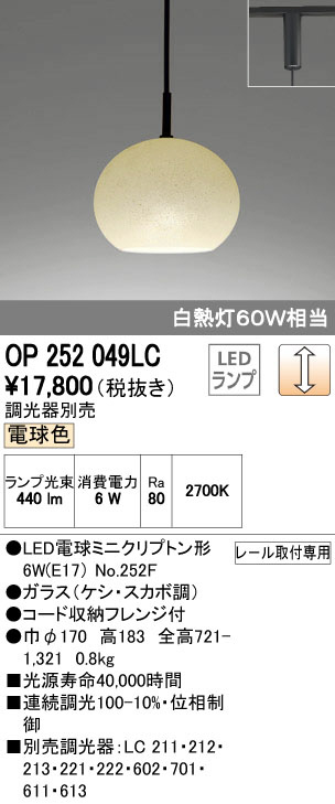 ODELIC ¥ª¡¼¥Ç¥ê¥Ã¥¯ ¥Ú¥ó¥À¥ó¥È¥é¥¤¥È OP252049LC