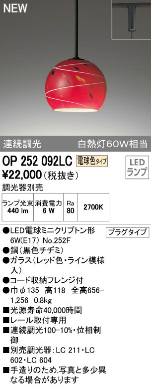ODELIC ¥ª¡¼¥Ç¥ê¥Ã¥¯ ¥Ú¥ó¥À¥ó¥È¥é¥¤¥È OP252092LC