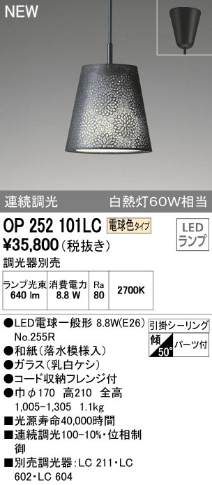 ODELIC ¥ª¡¼¥Ç¥ê¥Ã¥¯ ¥Ú¥ó¥À¥ó¥È¥é¥¤¥È OP252101LC