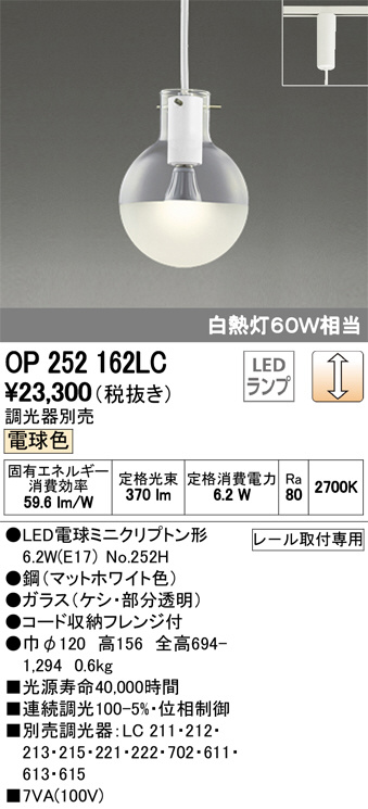 ODELIC ¥ª¡¼¥Ç¥ê¥Ã¥¯ ¥Ú¥ó¥À¥ó¥È¥é¥¤¥È OP252162LC