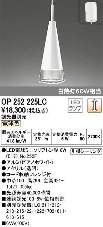 ODELIC ¥ª¡¼¥Ç¥ê¥Ã¥¯ ¥Ú¥ó¥À¥ó¥È¥é¥¤¥È OP252225LC
