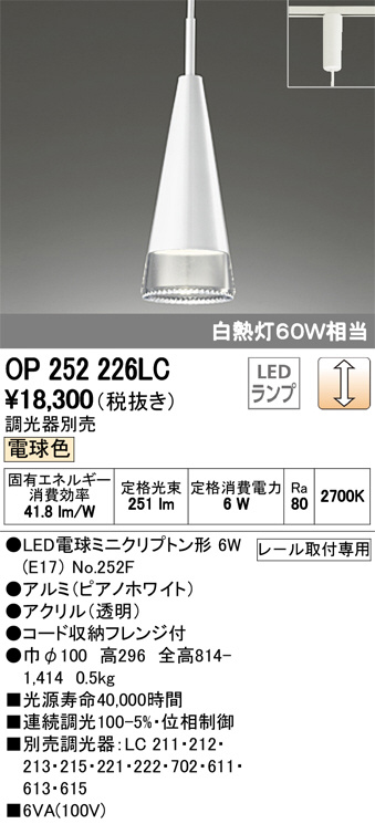 ODELIC ¥ª¡¼¥Ç¥ê¥Ã¥¯ ¥Ú¥ó¥À¥ó¥È¥é¥¤¥È OP252226LC
