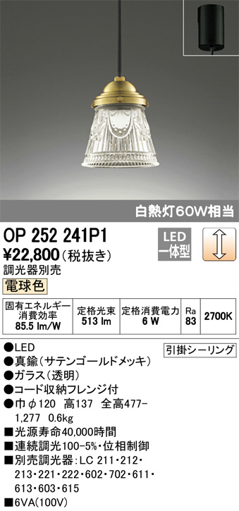 ODELIC ¥ª¡¼¥Ç¥ê¥Ã¥¯ ¥Ú¥ó¥À¥ó¥È¥é¥¤¥È OP252241P1