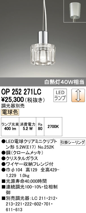 ODELIC ¥ª¡¼¥Ç¥ê¥Ã¥¯ ¥Ú¥ó¥À¥ó¥È¥é¥¤¥È OP252271LC