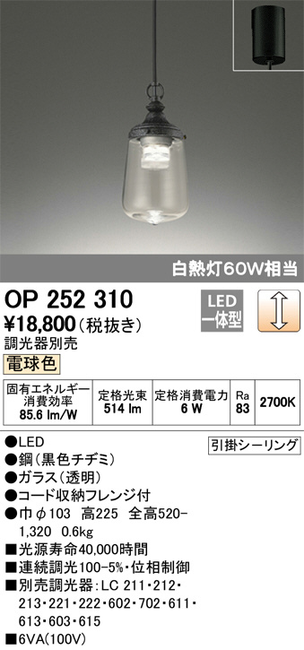 ODELIC ¥ª¡¼¥Ç¥ê¥Ã¥¯ ¥Ú¥ó¥À¥ó¥È¥é¥¤¥È OP252310