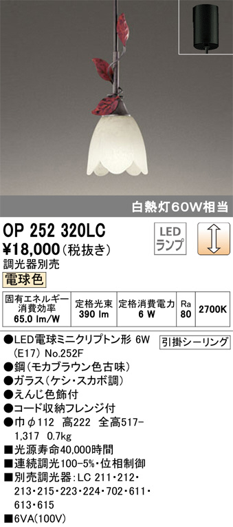 ODELIC ¥ª¡¼¥Ç¥ê¥Ã¥¯ ¥Ú¥ó¥À¥ó¥È¥é¥¤¥È OP252320LC