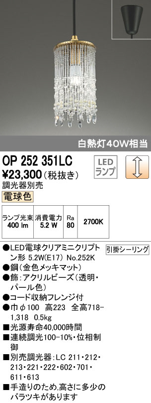 ODELIC ¥ª¡¼¥Ç¥ê¥Ã¥¯ ¥Ú¥ó¥À¥ó¥È¥é¥¤¥È OP252351LC