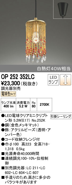 ODELIC ¥ª¡¼¥Ç¥ê¥Ã¥¯ ¥Ú¥ó¥À¥ó¥È¥é¥¤¥È OP252352LC