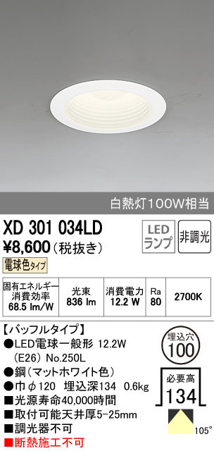 ODELIC ¥ª¡¼¥Ç¥ê¥Ã¥¯ ¥À¥¦¥ó¥é¥¤¥È XD301034LD