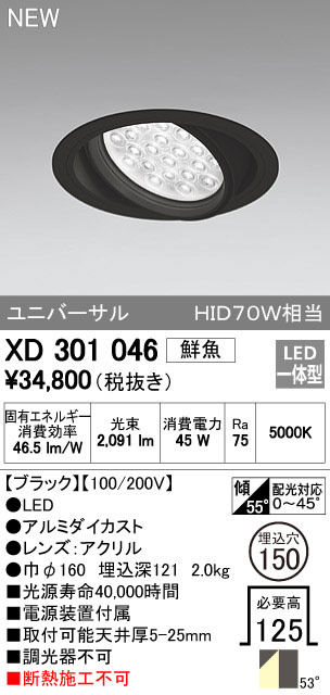 ODELIC ¥ª¡¼¥Ç¥ê¥Ã¥¯ ¥À¥¦¥ó¥é¥¤¥È XD301046