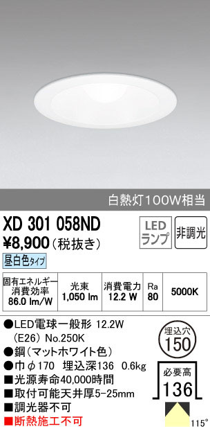 ODELIC ¥ª¡¼¥Ç¥ê¥Ã¥¯ ¥À¥¦¥ó¥é¥¤¥È XD301058ND