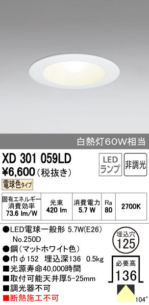 ODELIC ¥ª¡¼¥Ç¥ê¥Ã¥¯ ¥À¥¦¥ó¥é¥¤¥È XD301059LD