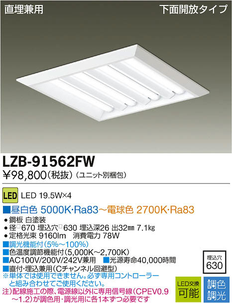 ¢£Ä´¸÷µ¡Ç½ÉÕ¡Ê5¡ó¡Á100¡ó¡Ë|¢£¿§²¹ÅÙÄ´ÀᵡǽÉÕ¡Ê5¡¤000K¡Á2¡¤700K¡Ë|¢£AC100V/200V/242V·óÍÑ|¢£¸÷¸»¼÷Ì¿40¡¤000»þ´Ö|¢£Ä¾ÉÕ¡¦Ëä¹þ·óÍÑ¡ÊC¥Á¥ã¥ó¥Í¥ë²óÈò·¿¡Ë|¢¨Ã±ÂΤǤϻÈÍѤǤ¤Þ¤»¤ó¡£É¬¤ºÀìÍÑ¥³¥ó¥È¥í¡¼¥é¡¼¤ÈÁȤ߹ç¤ï¤»¤Æ¤´»ÈÍѤ¯¤À¤µ¤¤¡£|Ãí¡ËÇÛÀþ»Ü¹©¤ÎºÝ¡¢ÅŸ»Àþ°Ê³°¤ËÀìÍÑ¿®¹æÀþ¡ÊCPEV0.9¡Á1.2¡Ë¤¬Ä´¿§ÍÑ¡¦Ä´¸÷ÍѤ˳Æ1Ëܤº¤ÄɬÍפǤ¹|Äê³Ê¸÷« 9160lm¡¡¾ÃÈñÅÅÎÏ 78W|Ra83/Ra83