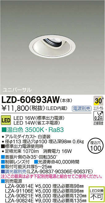 DAIKO Âç¸÷Åŵ¡ LED¥æ¥Ë¥Ð¡¼¥µ¥ë¥À¥¦¥ó¥é¥¤¥È LZD-60693AW