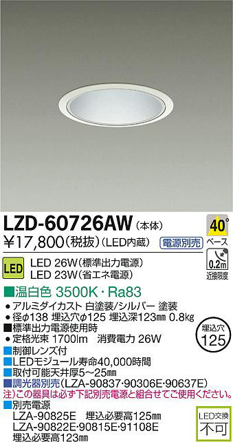 DAIKO Âç¸÷Åŵ¡ LED¥À¥¦¥ó¥é¥¤¥È LZD-60726AW