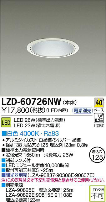 ¢£À©¸æ¥ì¥ó¥ºÉÕ|¢£LED¥â¥¸¥å¡¼¥ë¼÷Ì¿40¡¤000»þ´Ö|¢£¼èÉÕ²Äǽŷ°æ¸ü5¡Á25mm|¢£Ä´¸÷´ïÊÌÇä¡ÊLZA-90837¡¦90306E¡¦90637E¡Ë|Ãí¡Ë¤³¤Î´ï¶ñ¤Ïɬ¤º²¼µÊÌÇäÅŸ»¤ÈÁȹ礻¤Æ¤´»ÈÍѤ¯¤À¤µ¤¤¡£|¢£ÊÌÇäÅŸ»¡¡LZA-90825E¡¡Ëä¹þɬÍ×¹â125mm¡¡LZA-90822E¡¦90815E¡¦91108E¡¡Ëä¹þɬÍ×¹â123mm|¢£É¸½à½ÐÎÏÅŸ»»ÈÍÑ»þ Äê³Ê¸÷« 1650lm¡¡¾ÃÈñÅÅÎÏ 26W|Ra83