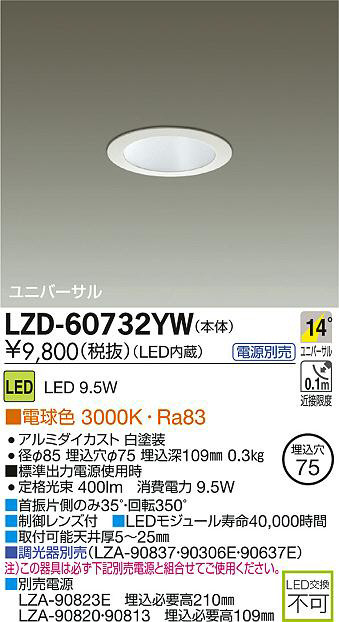 ¢£¼ó¿¶ÊÒ¦¤Î¤ß35¡ë¡¦²óž350¡ë|¢£À©¸æ¥ì¥ó¥ºÉÕ|¢£LED¥â¥¸¥å¡¼¥ë¼÷Ì¿40¡¤000»þ´Ö|¢£¼èÉÕ²Äǽŷ°æ¸ü5¡Á25mm|¢£Ä´¸÷´ïÊÌÇä¡ÊLZA-90837¡¦90306E¡¦90637E¡Ë|Ãí¡Ë¤³¤Î´ï¶ñ¤Ïɬ¤º²¼µÊÌÇäÅŸ»¤ÈÁȹ礻¤Æ¤´»ÈÍѤ¯¤À¤µ¤¤¡£|¢£ÊÌÇäÅŸ»¡¡LZA-90823E¡¡Ëä¹þɬÍ×¹â210mm¡¡LZA-90820¡¦90813¡¡Ëä¹þɬÍ×¹â109mm|¢£É¸½à½ÐÎÏÅŸ»»ÈÍÑ»þ Äê³Ê¸÷« 400lm¡¡¾ÃÈñÅÅÎÏ 9.5W|Ra83