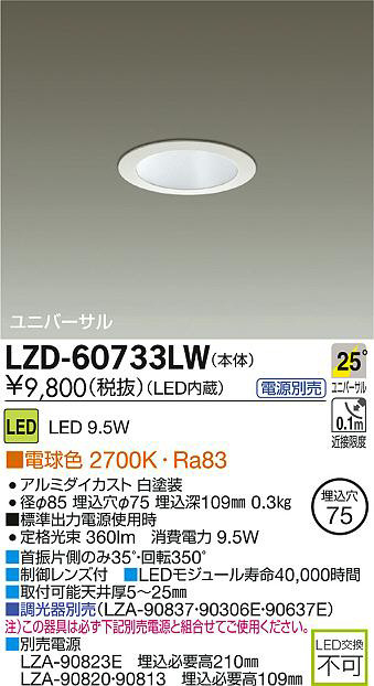 ¢£¼ó¿¶ÊÒ¦¤Î¤ß35¡ë¡¦²óž350¡ë|¢£À©¸æ¥ì¥ó¥ºÉÕ|¢£LED¥â¥¸¥å¡¼¥ë¼÷Ì¿40¡¤000»þ´Ö|¢£¼èÉÕ²Äǽŷ°æ¸ü5¡Á25mm|¢£Ä´¸÷´ïÊÌÇä¡ÊLZA-90837¡¦90306E¡¦90637E¡Ë|Ãí¡Ë¤³¤Î´ï¶ñ¤Ïɬ¤º²¼µÊÌÇäÅŸ»¤ÈÁȹ礻¤Æ¤´»ÈÍѤ¯¤À¤µ¤¤¡£|¢£ÊÌÇäÅŸ»¡¡LZA-90823E¡¡Ëä¹þɬÍ×¹â210mm¡¡LZA-90820¡¦90813¡¡Ëä¹þɬÍ×¹â109mm|¢£É¸½à½ÐÎÏÅŸ»»ÈÍÑ»þ Äê³Ê¸÷« 360lm¡¡¾ÃÈñÅÅÎÏ 9.5W|Ra83