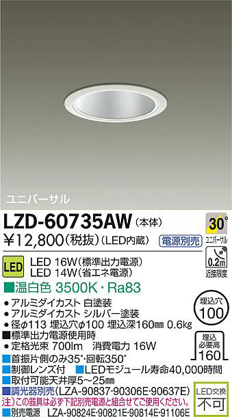 DAIKO Âç¸÷Åŵ¡ LED¥æ¥Ë¥Ð¡¼¥µ¥ë¥À¥¦¥ó¥é¥¤¥È LZD-60735AW