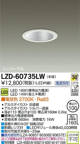 DAIKO Âç¸÷Åŵ¡ LED¥æ¥Ë¥Ð¡¼¥µ¥ë¥À¥¦¥ó¥é¥¤¥È LZD-60735LW