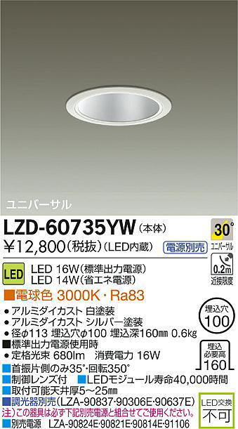 DAIKO Âç¸÷Åŵ¡ LED¥æ¥Ë¥Ð¡¼¥µ¥ë¥À¥¦¥ó¥é¥¤¥È LZD-60735YW