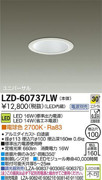 DAIKO Âç¸÷Åŵ¡ LED¥æ¥Ë¥Ð¡¼¥µ¥ë¥À¥¦¥ó¥é¥¤¥È LZD-60737LW