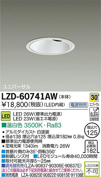 DAIKO Âç¸÷Åŵ¡ LED¥æ¥Ë¥Ð¡¼¥µ¥ë¥À¥¦¥ó¥é¥¤¥È LZD-60741AW
