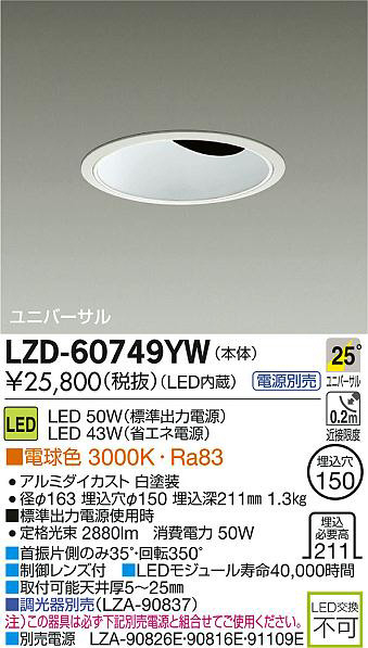DAIKO Âç¸÷Åŵ¡ LED¥æ¥Ë¥Ð¡¼¥µ¥ë¥À¥¦¥ó¥é¥¤¥È LZD-60749YW