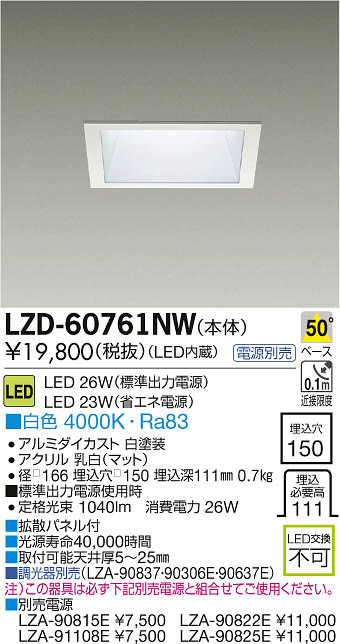 ¢£³È»¶¥Ñ¥Í¥ëÉÕ|¢£¸÷¸»¼÷Ì¿40¡¤000»þ´Ö|¢£¼èÉÕ²Äǽŷ°æ¸ü5¡Á25mm|¢£Ä´¸÷´ïÊÌÇä¡ÊLZA-90837¡¦90306E¡¦90637E¡Ë|Ãí¡Ë¤³¤Î´ï¶ñ¤Ïɬ¤º²¼µÊÌÇäÅŸ»¤ÈÁȹ礻¤Æ¤´»ÈÍѤ¯¤À¤µ¤¤¡£|¢£ÊÌÇäÅŸ»¡¡LZA-90815E ¡ï7¡¤500 LZA-90822E ¡ï11¡¤000 LZA-91108E ¡ï7¡¤500 LZA-90825E ¡ï11¡¤000|¢£É¸½à½ÐÎÏÅŸ»»ÈÍÑ»þ¡¡Äê³Ê¸÷« 1040lm¡¡¾ÃÈñÅÅÎÏ 26W|Ra83