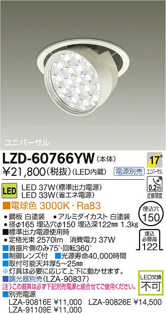¢£¼ó¿¶ÊÒ¦¤Î¤ß75¡ë¡¦²óž360¡ë|¢£À©¸æ¥ì¥ó¥ºÉÕ|¢£¸÷¸»¼÷Ì¿40¡¤000»þ´Ö|¢£¼èÉÕ²Äǽŷ°æ¸ü5¡Á25mm|¢¨Åô¶ñ¤ÏɬÍפ˱þ¤¸¤Æ¾å²¼¤Ëư¤«¤»¤Þ¤¹¡£|¢£Ä´¸÷´ïÊÌÇä¡ÊLZA-90837¡Ë|Ãí¡Ë¤³¤Î´ï¶ñ¤Ïɬ¤º²¼µÊÌÇäÅŸ»¤ÈÁȹ礻¤Æ¤´»ÈÍѤ¯¤À¤µ¤¤¡£|¢£ÊÌÇäÅŸ»¡¡LZA-90816E ¡ï11¡¤000 LZA-90826E ¡ï14¡¤500 LZA-91109E ¡ï11¡¤000|¢£É¸½à½ÐÎÏÅŸ»»ÈÍÑ»þ¡¡Äê³Ê¸÷« 2570lm¡¡¾ÃÈñÅÅÎÏ 37W|Ra83