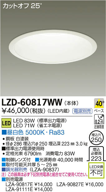 ¢£À©¸æ¥ì¥ó¥ºÉÕ|¢£¸÷¸»¼÷Ì¿40¡¤000»þ´Ö|¢£¼èÉÕ²Äǽŷ°æ¸ü5¡Á25mm|¢£Ä´¸÷´ïÊÌÇä¡ÊLZA-90837¡Ë|Ãí¡Ë¤³¤Î´ï¶ñ¤Ïɬ¤º²¼µÊÌÇäÅŸ»¤ÈÁȹ礻¤Æ¤´»ÈÍѤ¯¤À¤µ¤¤¡£|¢£ÊÌÇäÅŸ»¡¡LZA-90817E ¡ï14¡¤000 LZA-90827E ¡ï16¡¤000 LZA-91111E ¡ï14¡¤000|¢£É¸½à½ÐÎÏÅŸ»»ÈÍÑ»þ¡¡Äê³Ê¸÷« 6790lm¡¡¾ÃÈñÅÅÎÏ 83W|Ra83