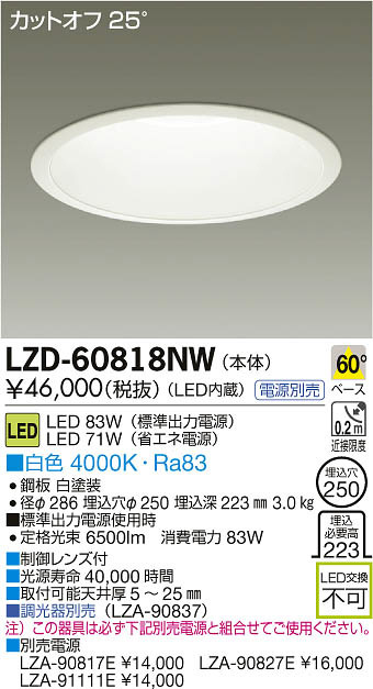 ¢£À©¸æ¥ì¥ó¥ºÉÕ|¢£¸÷¸»¼÷Ì¿40¡¤000»þ´Ö|¢£¼èÉÕ²Äǽŷ°æ¸ü5¡Á25mm|¢£Ä´¸÷´ïÊÌÇä¡ÊLZA-90837¡Ë|Ãí¡Ë¤³¤Î´ï¶ñ¤Ïɬ¤º²¼µÊÌÇäÅŸ»¤ÈÁȹ礻¤Æ¤´»ÈÍѤ¯¤À¤µ¤¤¡£|¢£ÊÌÇäÅŸ»¡¡LZA-90817E ¡ï14¡¤000 LZA-90827E ¡ï16¡¤000 LZA-91111E ¡ï14¡¤000|¢£É¸½à½ÐÎÏÅŸ»»ÈÍÑ»þ¡¡Äê³Ê¸÷« 6500lm¡¡¾ÃÈñÅÅÎÏ 83W|Ra83