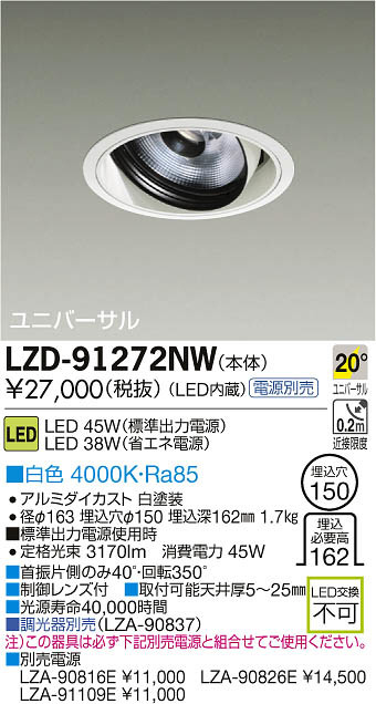 ¢£¼ó¿¶ÊÒ¦¤Î¤ß40¡ë¡¦²óž350¡ë|¢£À©¸æ¥ì¥ó¥ºÉÕ|¢£¼èÉÕ²Äǽŷ°æ¸ü5¡Á25mm|¢£¸÷¸»¼÷Ì¿40¡¤000»þ´Ö|¢£Ä´¸÷´ïÊÌÇä¡ÊLZA-90837¡Ë|Ãí¡Ë¤³¤Î´ï¶ñ¤Ïɬ¤º²¼µÊÌÇäÅŸ»¤ÈÁȹ礻¤Æ¤´»ÈÍѤ¯¤À¤µ¤¤¡£|¢£ÊÌÇäÅŸ»¡¡LZA-90816E ¡ï11¡¤000 LZA-90826E ¡ï14¡¤500 LZA-91109E ¡ï11¡¤000|¢£É¸½à½ÐÎÏÅŸ»»ÈÍÑ»þ¡¡Äê³Ê¸÷« 3170lm¡¡¾ÃÈñÅÅÎÏ 45W|Ra85