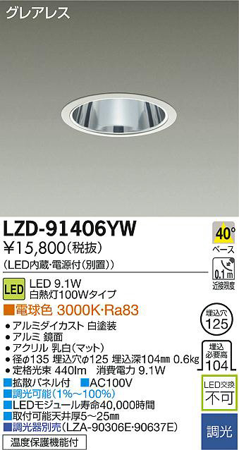 DAIKO Âç¸÷Åŵ¡ LED¥À¥¦¥ó¥é¥¤¥È LZD-91406YW
