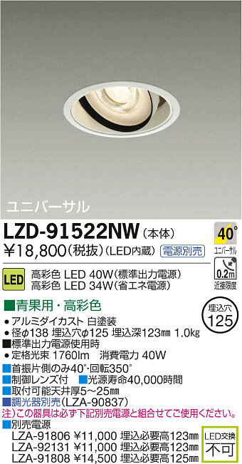 ¢£¼ó¿¶ÊÒ¦¤Î¤ß40¡ë¡¦²óž350¡ë|¢£À©¸æ¥ì¥ó¥ºÉÕ|¢£¸÷¸»¼÷Ì¿40¡¤000»þ´Ö|¢£¼èÉÕ²Äǽŷ°æ¸ü5¡Á25mm|¢£Ä´¸÷´ïÊÌÇä¡ÊLZA-90837¡Ë|Ãí¡Ë¤³¤Î´ï¶ñ¤Ïɬ¤º²¼µÊÌÇäÅŸ»¤ÈÁȹ礻¤Æ¤´»ÈÍѤ¯¤À¤µ¤¤¡£|¢£ÊÌÇäÅŸ»¡¡LZA-91806 ¡ï11¡¤000 Ëä¹þɬÍ×¹â123mm LZA-92131 ¡ï11¡¤000 Ëä¹þɬÍ×¹â123mm LZA-91808 ¡ï14¡¤500 Ëä¹þɬÍ×¹â125mm|¢£É¸½à½ÐÎÏÅŸ»»ÈÍÑ»þ¡¡Äê³Ê¸÷« 1760lm¡¡¾ÃÈñÅÅÎÏ 40W