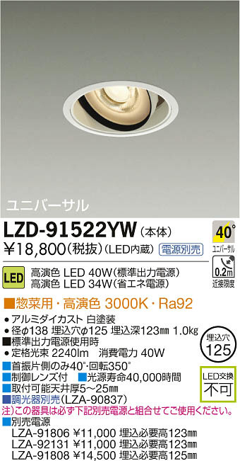 ¢£¼ó¿¶ÊÒ¦¤Î¤ß40¡ë¡¦²óž350¡ë|¢£À©¸æ¥ì¥ó¥ºÉÕ|¢£¸÷¸»¼÷Ì¿40¡¤000»þ´Ö|¢£¼èÉÕ²Äǽŷ°æ¸ü5¡Á25mm|¢£Ä´¸÷´ïÊÌÇä¡ÊLZA-90837¡Ë|Ãí¡Ë¤³¤Î´ï¶ñ¤Ïɬ¤º²¼µÊÌÇäÅŸ»¤ÈÁȹ礻¤Æ¤´»ÈÍѤ¯¤À¤µ¤¤¡£|¢£ÊÌÇäÅŸ»¡¡LZA-91806 ¡ï11¡¤000 Ëä¹þɬÍ×¹â123mm LZA-92131 ¡ï11¡¤000 Ëä¹þɬÍ×¹â123mm LZA-91808 ¡ï14¡¤500 Ëä¹þɬÍ×¹â125mm|¢£É¸½à½ÐÎÏÅŸ»»ÈÍÑ»þ¡¡Äê³Ê¸÷« 2240lm¡¡¾ÃÈñÅÅÎÏ 40W|Ra92