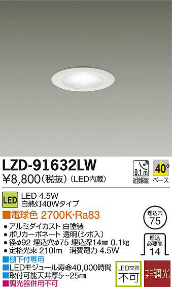 DAIKO Âç¸÷Åŵ¡ LED¥À¥¦¥ó¥é¥¤¥È LZD-91632LW